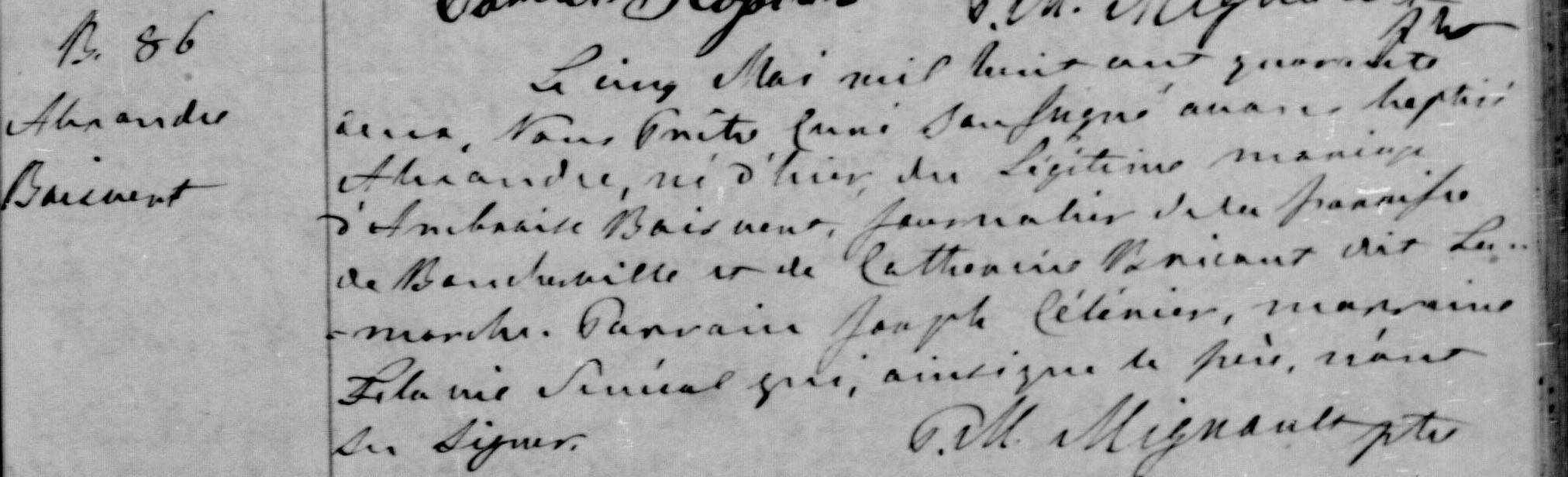 Odile et son père Jean-Baptiste plaident probablement la cause d'Alexandre auprès des autorités ecclésiastiques de l'époque et c'est sans doute pour cette raison qu'Alexandre échappe à une autre arrestation et à l'extradition pour meurtre.