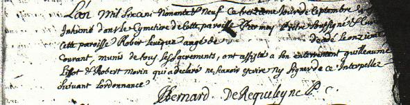 Voici la signature de Robert Levesque lorsqu'il signe son contrat de mariage, avec Jeanne Chevalier, le vendredi 21 avril 1679 devant le notaire Paul Vachon.